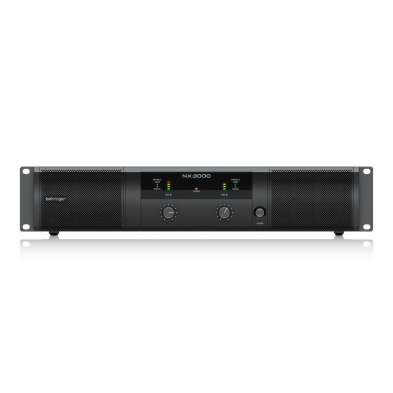 The Behringer NX3000 Power Amplifier features a two channel design and delivers a maximum output of 3000 watts into 4 ohms (bridged), as well as 2 x 1500 watts into 2 ohms and 2 x 900 watts into 4 ohms.