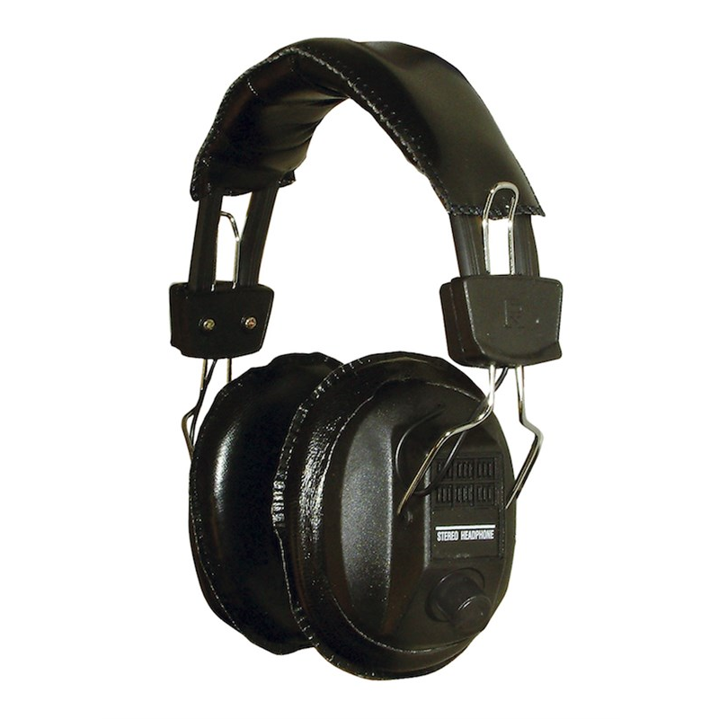 The full-sized economy stereo headphones with padded ear cups and a padded adjustable headband feature left and right volume controls and a mono/stereo switch.