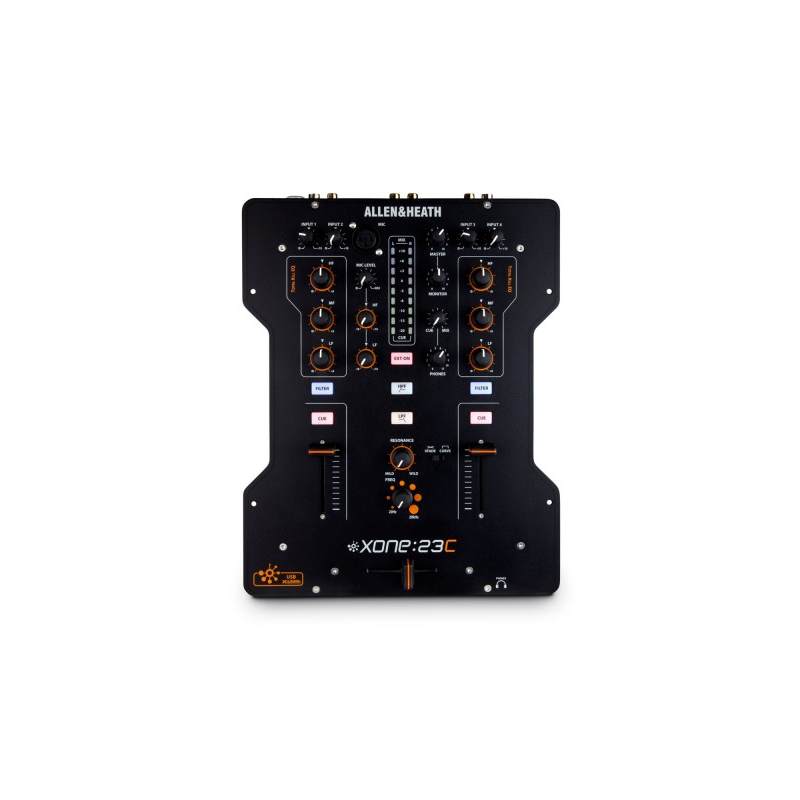 Xone:23C includes an enhanced version of the legendary Xone filter with resonance control, VCA faders, 3 band total kill EQ, illuminated switches, crossfader curve selector and styling inspired by the flagship Xone:DB4.