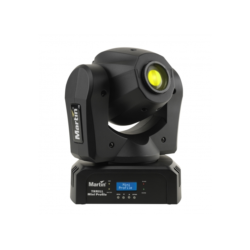 Imagine having the ability to integrate the moving beams of light, shine spotlights when and where you need them, or add the dramatic effect of colors and “gobos” flying around the audience during your live shows. Now you can with the THRILL Mini Profile, Martin professional’s smallest and most affordable moving head to date. THRILL Mini Profile has been designed to help DJs, musicians and entertainers take their performances to the next level–whether they’re in lounge bar or pub, to a wedding or high-energy dance floor.