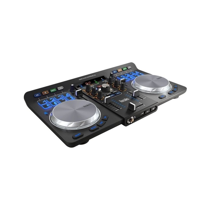 With the Hercules Universal DJ controller, parties get a whole new dimension because there aren't many DJ controllers that are as flexible and versatile as this one. You can use this two-deck controller in three different ways. Firstly, you can connect it to a PC/Mac (laptop or desktop computer) via the accessory USB cable, and use the DJUCED software that's also included. Plug a set of speakers into the RCA outputs, plug a set of headphones into the connector on the front, and you're good to go. It's also possible to use it wirelessly via iOS/Android.