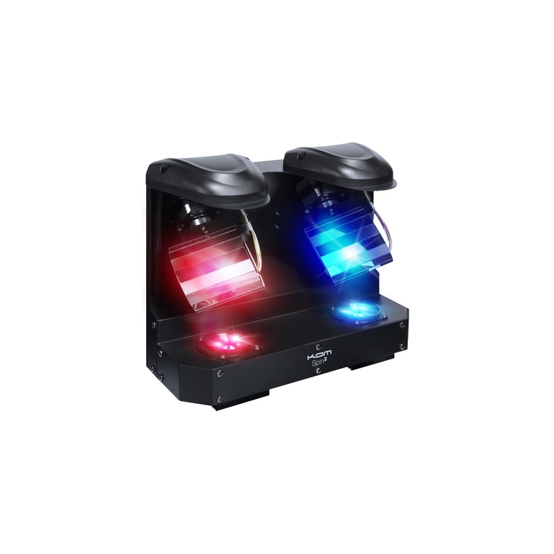 The Kam spin 2 is a wide angle multi-scanning mirror disco light with beam effects it comes with LED 2 x rotating mirror barrels move on X&Y axis.Multi-colour red, green, blue and white FX, each barrel is multi-colour. It has easy-to-use 4 button control panel and has safety chain eyelet for stands, rigs and ceilings, adjustable hanging bracket.